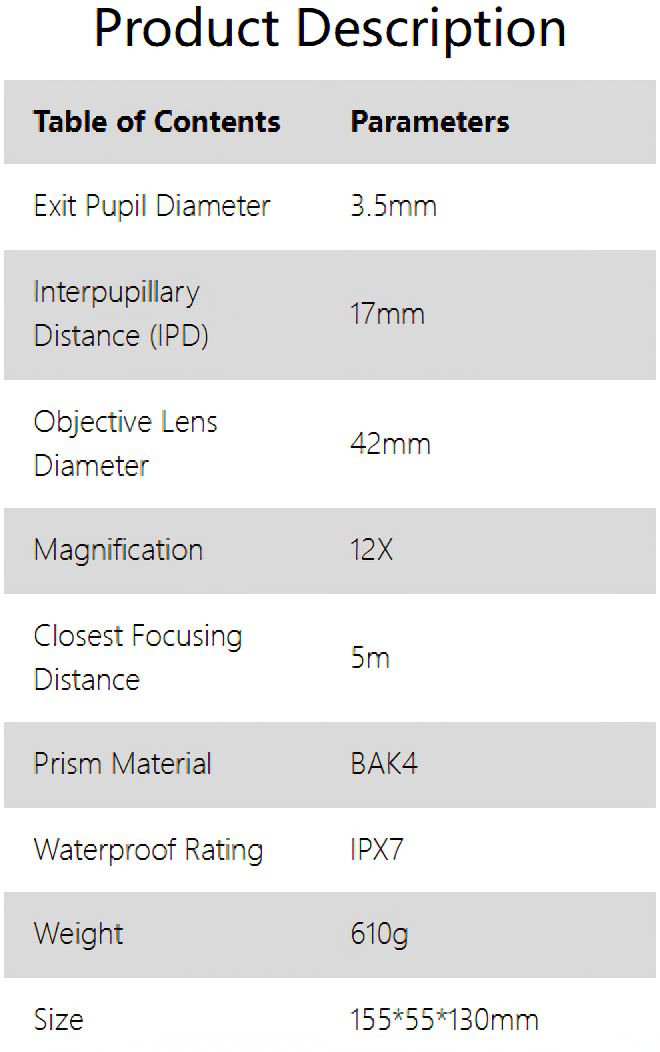 7. 42mm objective lens, wider field of view, see a larger field of view.